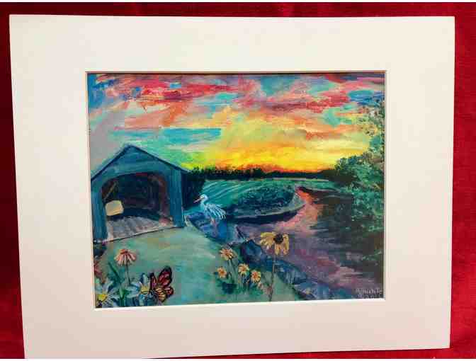 "End of Day" Sheffield Covered Bridge Sheffield, MA original 14" x 11" print w/matt by Margaret Buchte.