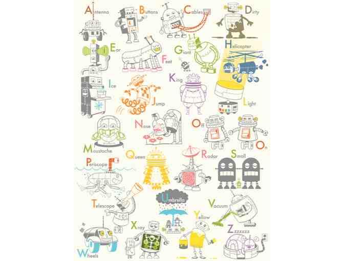 Designed by Artist Amanda Fuller - 18x24 colorful robot alphabet print on archival quality ink and paper.