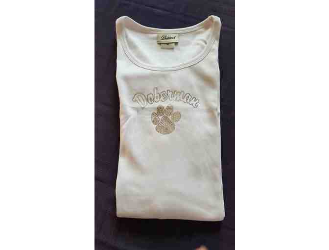 You are bidding on a long sleeved Tee featuring Doberman and Paw Print from Paula's Bling ThingZ.