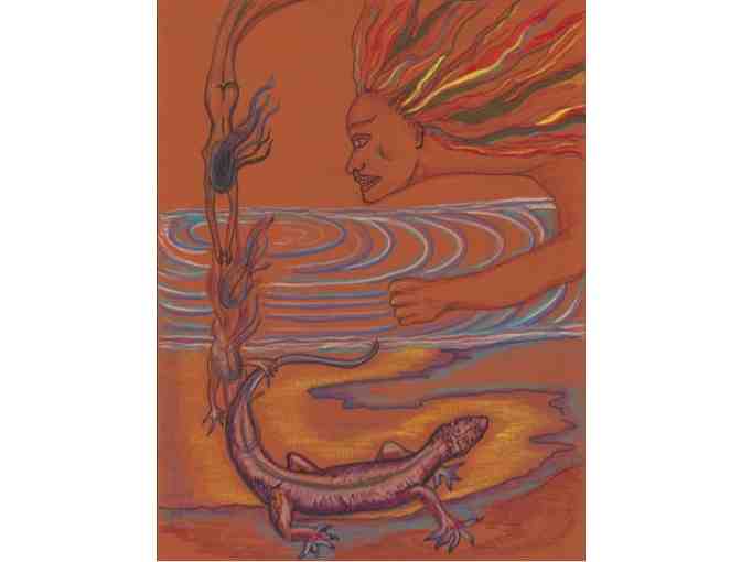 Pele Chasing Waka, original colored pencil and ink on pastel paper by Carol Araki Wyban.