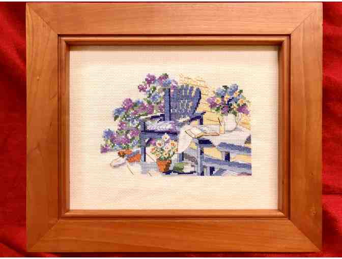 9 1/2" x 7 1/2" Needle point of Adirondack Chair by Local Artist in 13" x 11" frame.