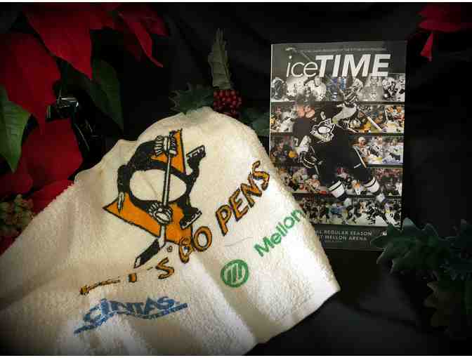 From the private collection of JRP, avid Penguins fans and memorabelia collectors since 1977, this is the official program from the Penguins Final Season at the Mellon Arena and the Rally Towel from 2010.