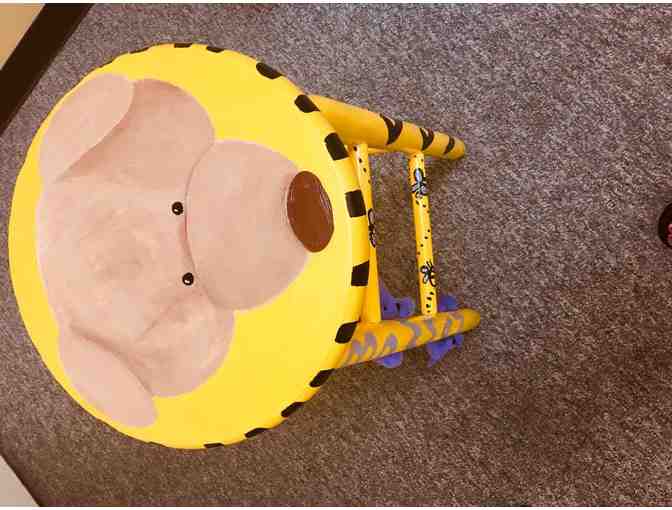 Hand-painted stool for Bowman Elementary School - painted by Sam Aman