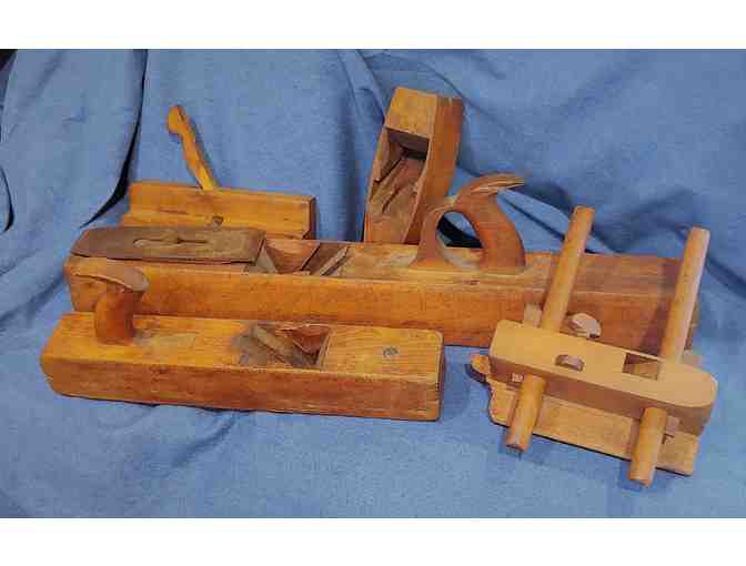 Antique carpenter tools, circa 1850-1900. Wooden planes, molding plane, Auburn Tool Co trademark. Set of five tools.  Shipping paid by the buyer or pickup at the Parish Office.