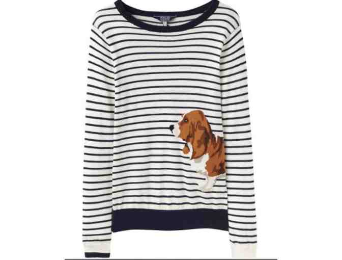 Crafted from a lovely cotton mix, you will be comfortable and warm on those walks around town or strolls in the country. The ribbed collar, cuffs and hem ensure that the sweater will fit you. Size 16.