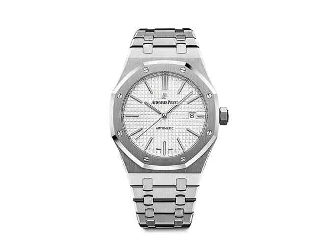 - One (1) Audemars Piguet Royal Oak timepiece. With its steel case, octagonal bezel, “tapisserie” dial and integrated bracelet, the Royal Oak set a new high standard and in 1972 took its rightful place as a true modern icon (retail value: $17,800)