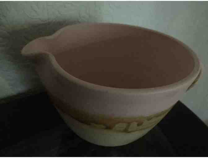 Artist's hand made soutwest pottery bowl. It is 7" in diameter, 5.5" tall, with a 3" base. It holds 6 cups of liquid.