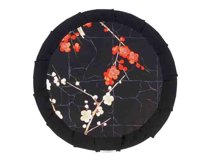 "Welcome your moment" says Dakini Meditative. Imagine taking your seat in a serene Zen garden. This is one of Dakini Meditative's most popular cushion designs, hand-crafted with exquisite Japanese fabric and featuring bright cherry blossoms that really stand out with a black background. This beautiful and elegant meditation cushion offers ideal support for a comfortable meditation posture.