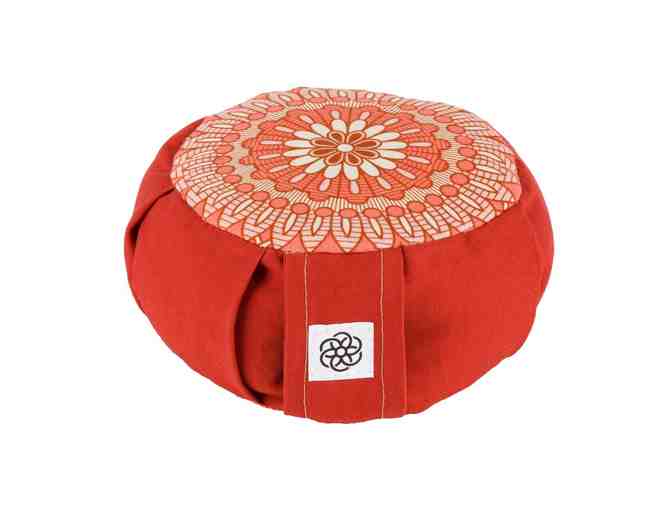 Each mini cushion is custom made with 100% cotton fabric, measuring 6 inches round by 2 inches high. Each cushion is filled with 1/2 pound of organic buckwheat hulls.