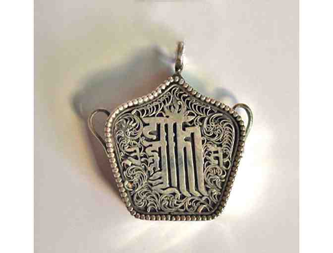 Himalayan Traders: Tibetan Sterling Silver Kalachakra Prayer Box Pendant