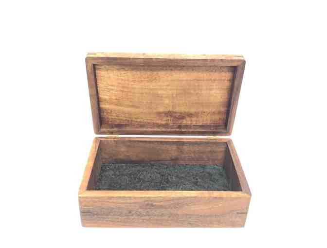 This gorgeous hinged box is carved out of precious koa wood measures 5"x8".