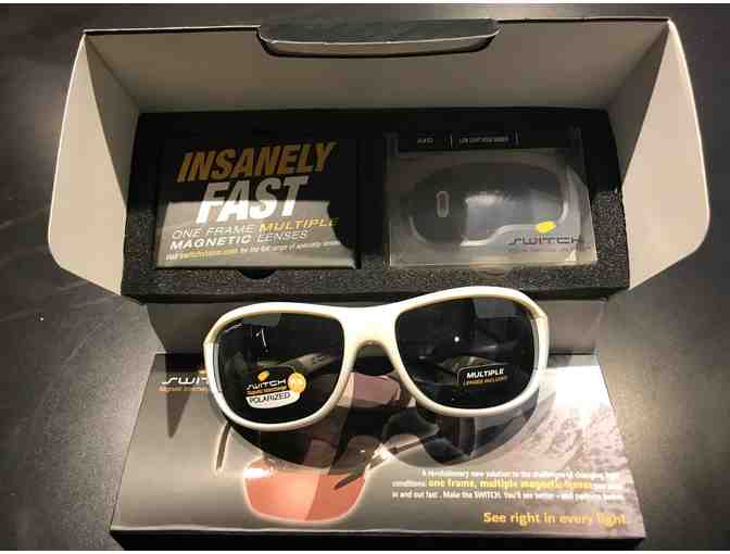 "Switch" AXO Sunglasses with 2 sets of lenses - Polaroid grey and light rose amber. Sunglass frames are a cream/white color.