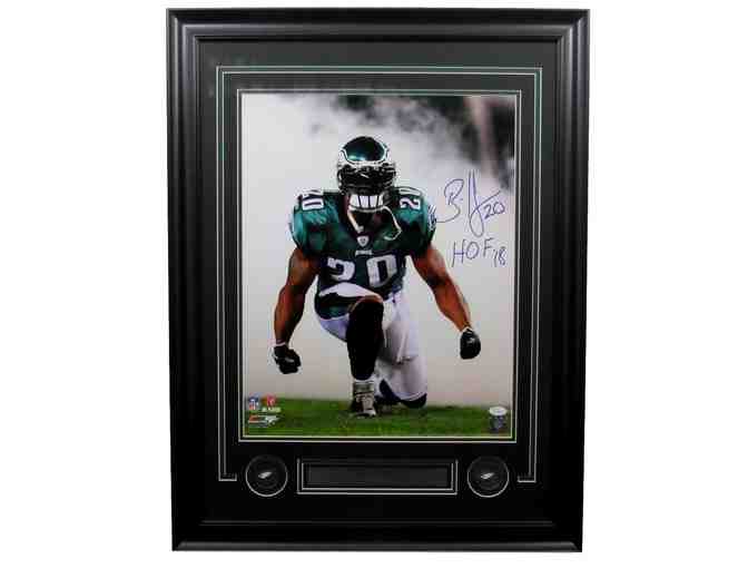 - Featured is a 16x20 photo framed of Brian Dawkins hand signed with the Hall of Fame inscription. Comes with JSA tamper-proof sticker and matching numbered certificate of authenticity.