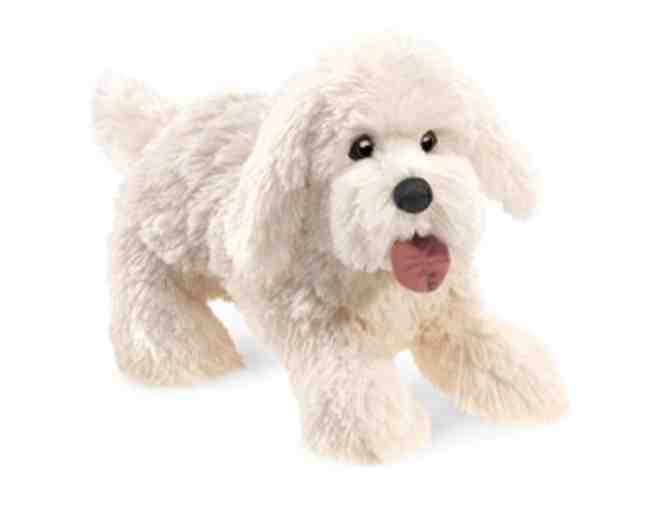 Play can sometimes be exhausting, so take a break and catch your breath with the oversized Folkmanis® PANTING DOG puppet. With a gentle squeeze to his body and a hand working his mouth, bring this soft and shaggy canine to life in your loving arms.
