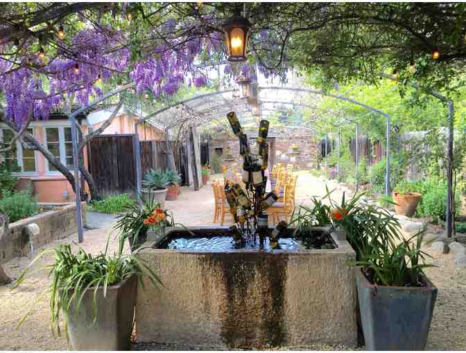 Enjoy wine tasting with five of your favorite people at Georis Winery and their gorgeous adobe style tasting room that is reminiscent of early California Mission architecture. Tall ceilings, large fireplace, hand hewed oversized beams supporting an impressive roof finished with antique handmade Spanish tiles. Their gardens are lush with mature landscaping and a small symbolic decorative vineyard planted to Petrus Clone. While tasting their fine wines you will be enjoying the stylish interior, or you can walk through their gardens and find your new favorite table.