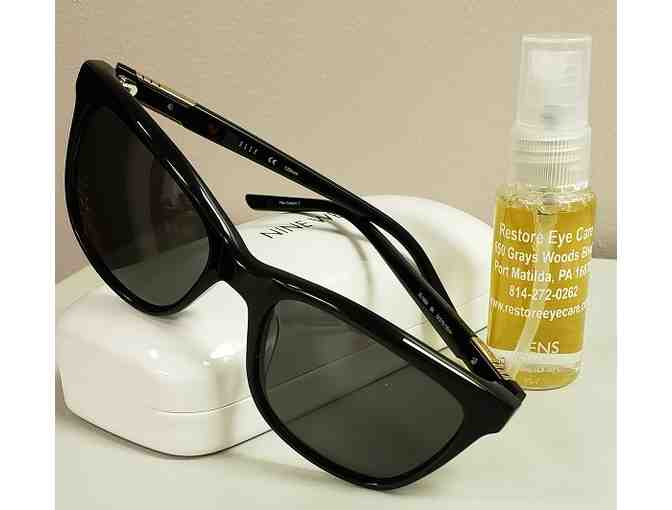Elle Women's Sunglasses with case, cleaning cloth and lens cleaner.