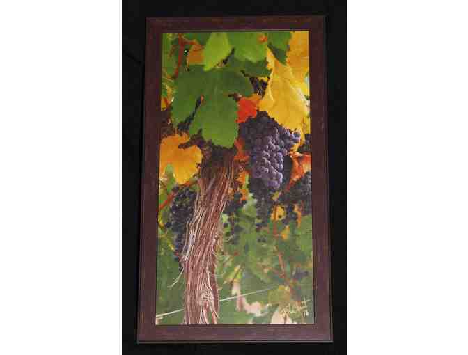 Talented Eastern Washington photographer John Clement offers this beautiful print "Shades of Vineyard Fall", an apt offering for Shakespeare in the Vines! It is printed on a 100% cotton rag canvas using vibrant colors depicting beautiful fall grapevines. This 10” x 19” wooden framed work of art can be yours for the right bid!