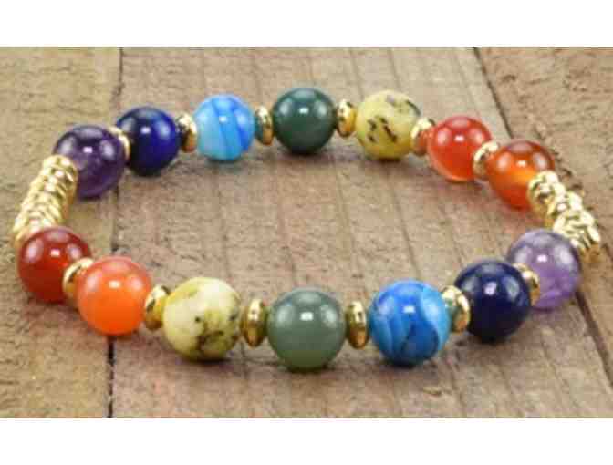 Genuine Gemstone Healing Chakra Beaded Bracelet representing the 7 chakras