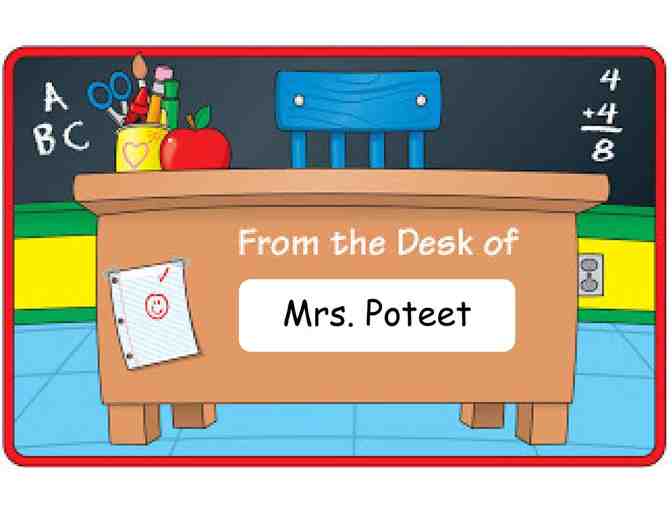 Is your child in Mrs. Poteet's class? Would he or she like to sit at Mrs. Poteet's desk for the day and run the show? If you answered yes to both of these questions, then you need to bid on this item!