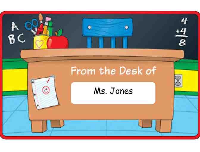 Is your child in Ms. Jones's class? Would he or she like to sit at Mrs. Jones's desk for the day and run the show? If you answered yes to both of these questions, then you need to bid on this item!