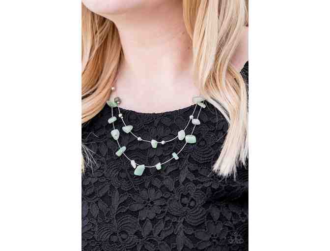 This delicate necklace and earring set in pale shades of green will complement many items in your wardrobe. Made of lead and nickel-free materials this jewelry is hypo-allergenic.