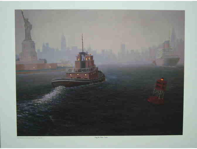 This print of a foggy New York harbor measures 24" x 20" and is ready for matting and framing.