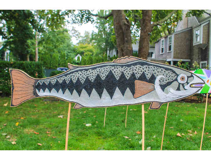 Jasmine Thompson, of Jazen’s Art Studio in Oak Bluffs, is a local artist with a BFA in Art Education from MassArt. Jasmine is a painter with an interest in mixed media and has been especially drawn to sand in the past year as an art medium...hence Sandy the Bass!!