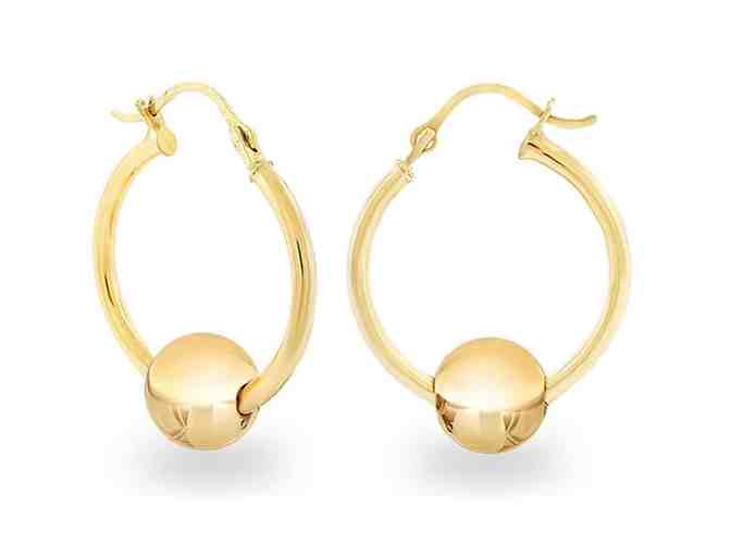 14K Solid Yellow Gold Hoop Earrings with Ball Slider