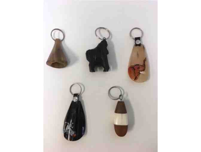 This collection of key chains from Kenya includes several unique fobs, such as:
