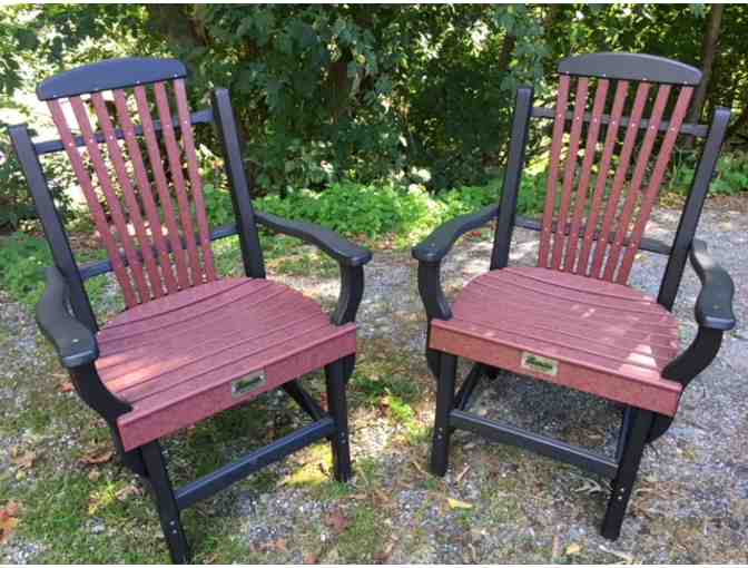 These attractive and durable outdoor armchairs are made of poly, which is durable weather-resistant, low maintenance and color-fast. Enjoy these chairs on your front or back porch, patio, gazebo, lawn or around the pool.