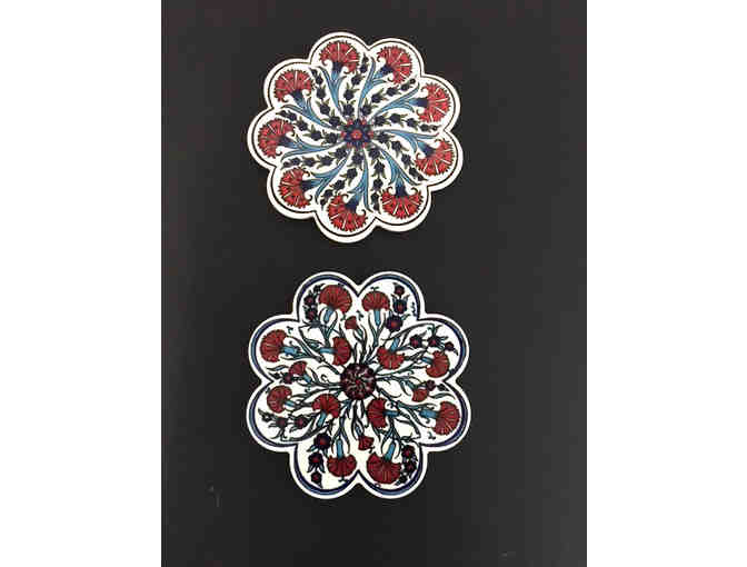 These lovely ceramic trivets are Handmade in Turkey made using the patterns and methods of traditional Turkish ceramic art.