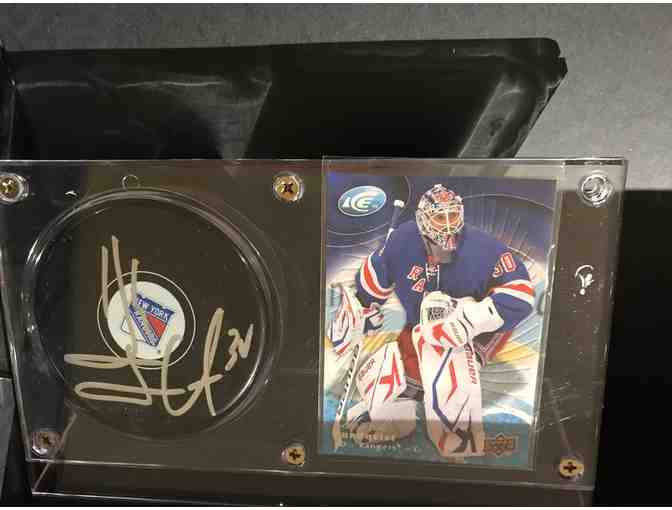 Henrik Lundqvist signed hockey puck is in a beautiful display case with a photo card. Certificate of Authenticity included.