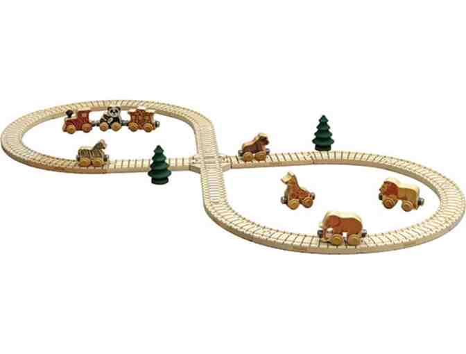 A Maple Landmark, Inc. Name Trains Wooded Railway System 27 pieces Safari Set. Made from rock maple with non-toxic finishes.
