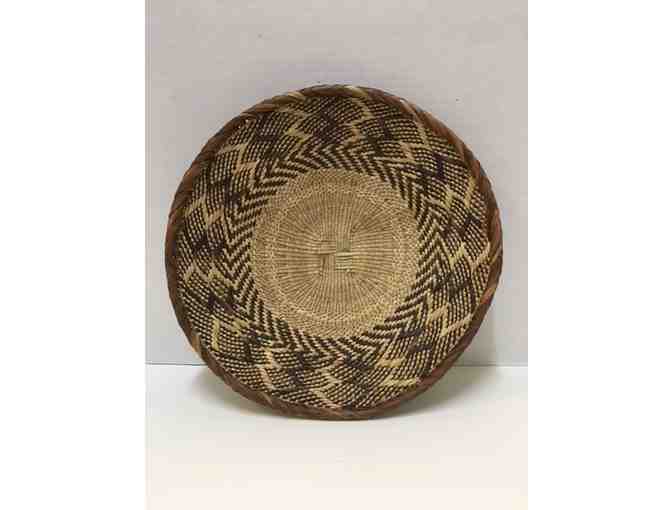 This traditional handmade winnowing basket is from the Ndebele tribe of Zimbabwe and is used to separate the grain from the chaff.