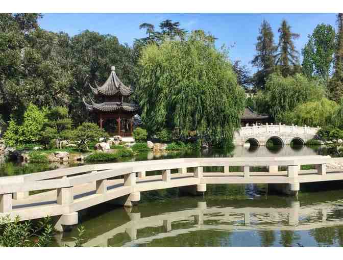 Includes two (2) guest admission passes good for one-day admission to The Huntington's gardens, art galleries, and library exhibition halls on regularly scheduled opening days, during regular hours.