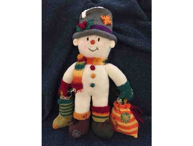This adorable and mismatched and patched snowman was lovingly created by Jeanette Mendell. With his sack and stocking filled with sweets, Mr. Twizzle makes a loveable soft toy or an irresistible Christmas decoration.