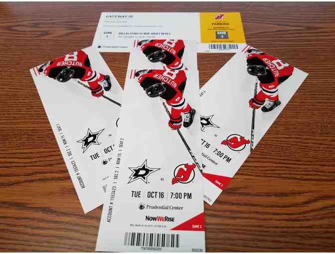 Enjoy viewing the live action of a NJ Devils ice hockey game at the Prudential Center in Newark, NJ on Tuesday, October 16 at 7:00 pm. NJ Devils will be playing Dallas. Seats are in Section 2, Row 15, seats 1-4.
