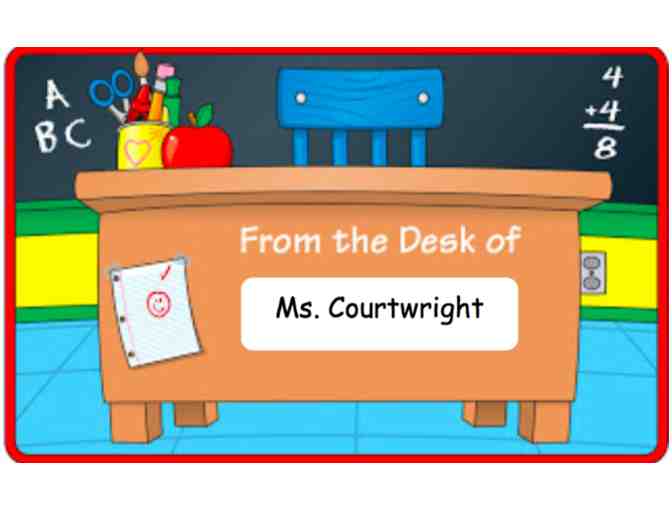 Is your child in Ms. Courtwright's class? Would he or she like to sit at Ms. Courtwright's desk for the day and run the show? If you answered yes to both of these questions, then you need to bid on this item!