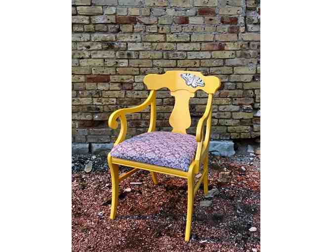 I’ve loved butterflies for a very long time. They have always been a symbol to me of the beauty and transformation that can emerge from unlikely places. How sometimes in unknown circumstances the end result can be something that couldn’t have previously been fathomed. Around the world the butterfly is often seen as representing endurance, change, hope, and life. Through cancer one needs endurance, change, and hope. Cancer has been by far the most transforming experience of my life. I have simply emerged a different being. Metamorphosis creates a loss of one form, but an emergence of another (many would argue more beautiful than the previous). I wanted my chair, as well as my life, to reflect the energy and warmth of a great vivacious life regardless of obstacles I have faced. I truly feel that over the course of this summer I have come through this transformation and am standing on the other side, bright, bold, and happy.