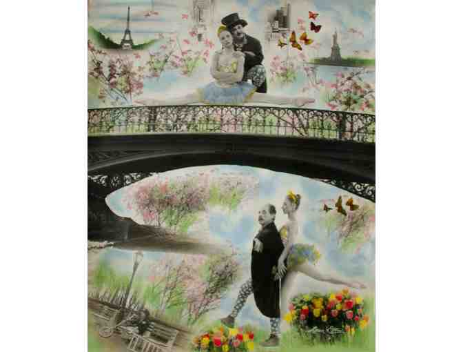 Loren Ellis  Pierrot and Pirouette photographic painting 40 x 33" commissioned for a theatre company. Hand printed and painted , no computer use. One of a kind. Hand printed and painted.