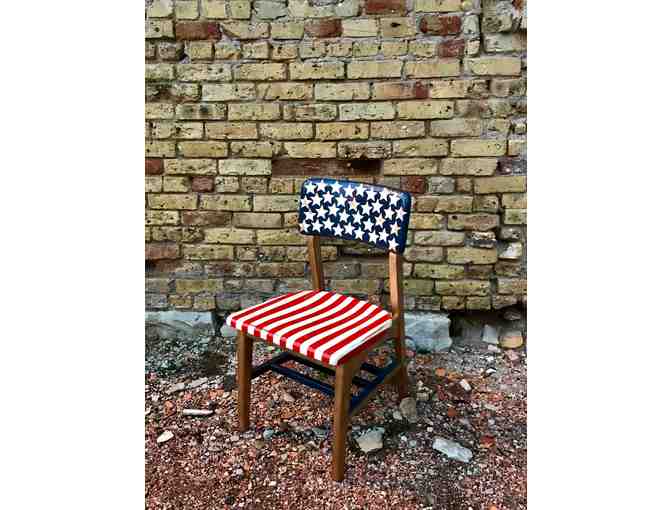 I was inspired to create this chair to honor the BOLD, BRIGHT, and BRAVE people who might not be famous or familiar, but have made a direct impact on our pursuit for a breast cancer cure. These people are the grassroots soldiers, scientists, advocates, and supporters whom earned their BOLD STRIPES. The BRIGHT STARS who are surviving in hopes of a cure; and the BRAVE HEARTS who illuminate and clarify the dilemmas confronted by women and men with-and at risk for -the disease..one of which was my friend who lost the battle, Kristen. Kristen was known as "Hardcore," and sadly, she was diagnosed with metastatic breast cancer, passing away a short time after her diagnosis. It's important for me to honor her memory by fundraising for WBCC's mission so one day we will find a cure.