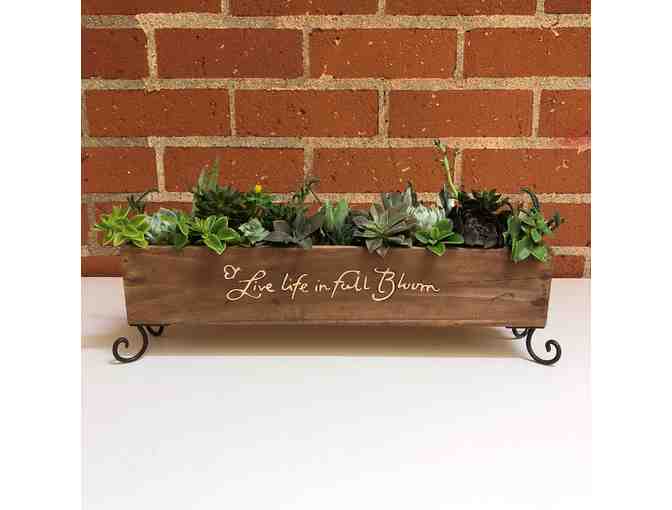 Show off this gorgeous succulent display on your coffee table or patio! Handmade in a unique planter, this arrangement will be beautiful all year round.