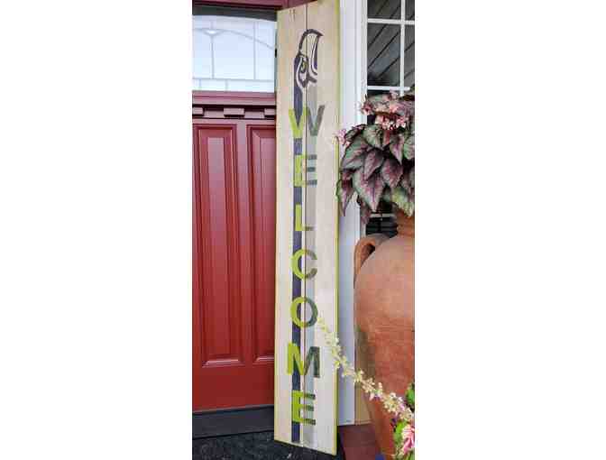 WELCOME Seahawk fans! Your front porch is begging for this 6' tall × 10-1/2" wide hand stenciled wooden "Welcome" sign. Calling all 12's!