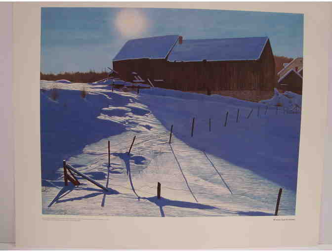 This print of a sunny winter day in Vermont measures 23" x 19.5" and is ready for matting and framing.