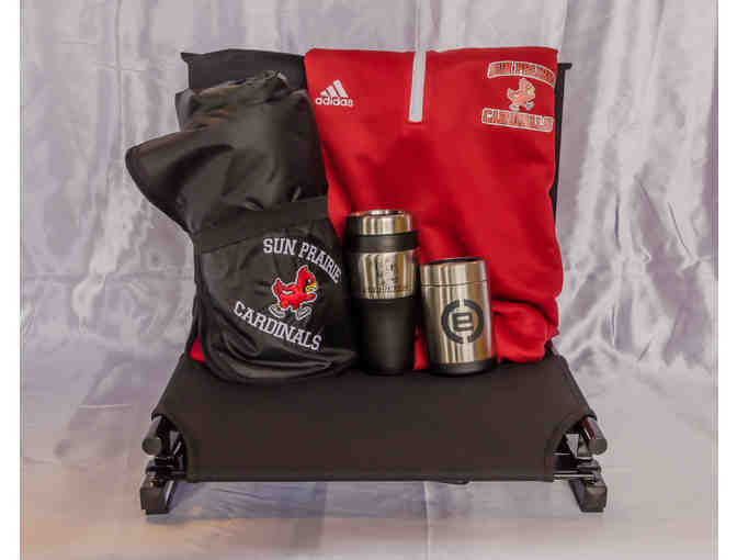 SP Cardinals Stadium Chair, Blanket, Jacket (size Large) and 2 travel mugs.