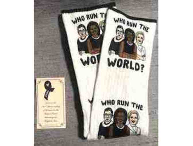 - 1 pair of Who Runs the World? socks (size 7-13)