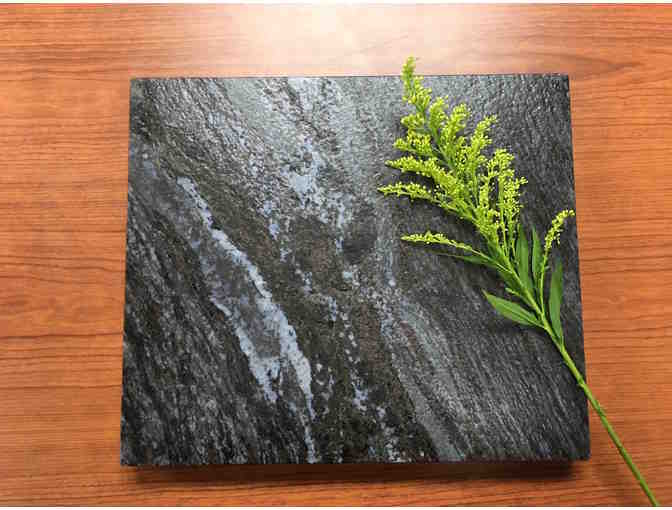 It measures 14”x12” and is made from Bross Blue Granite from Norway and hand crafted in Shelburne, Vermont.
