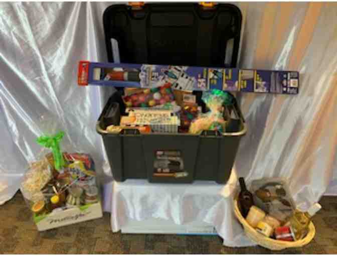 Heavy Duty Storage Tote: Hampton Inn Stay, Beans and Cream Gift Card, children's games, wine, Intellivision Video game system, super sized kite, and SO MUCH MORE!!!!