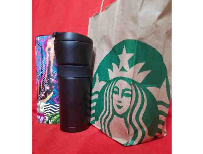 Starbuck's Travel mug is just what you need when you are running late or just on the go.