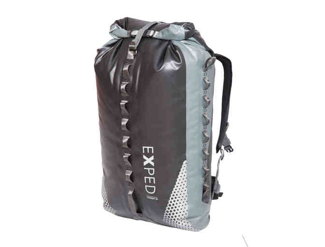 EXPED's Torrent 50 is a waterproof, rugged, roll-top backpack with comfortable harness and removable hip belt. Multiple attachment points. Extra-durable 840 denier oxford nylon fabric, high-frequency welded seams. 50 liter capacity.